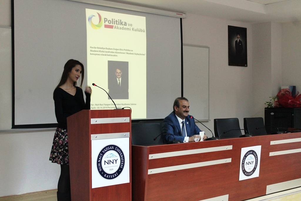 Hacılar Belediye Başkanı Sayın Doğan Ekici, Politika ve Akademi Kulübü’nün düzenlemiş olduğu Akademi Söyleşileri kapsamında 30 Ekim Perşembe saat 10:00’da Mühendislik Fakültesi Konferans Salonu’nda öğrencilerimizle buluştu.